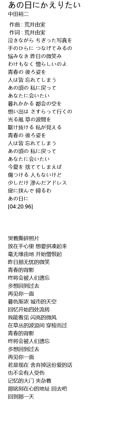 | [00:37.38] | 悩みなき 昨日の微笑み |
