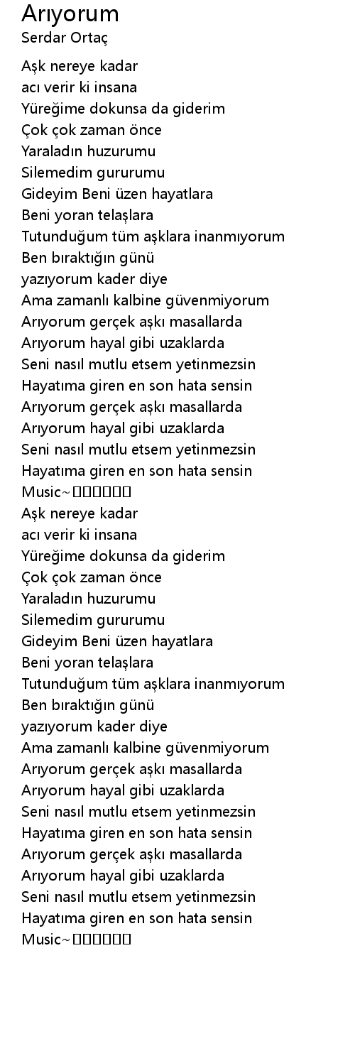 | [04:55.00] | Arıyorum hayal gibi uzaklarda |