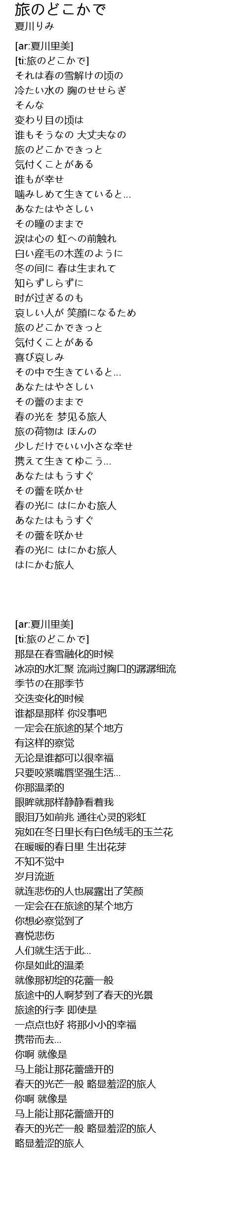 | [02:19.09] | 旅途中的人啊梦到了春天的光景 |
