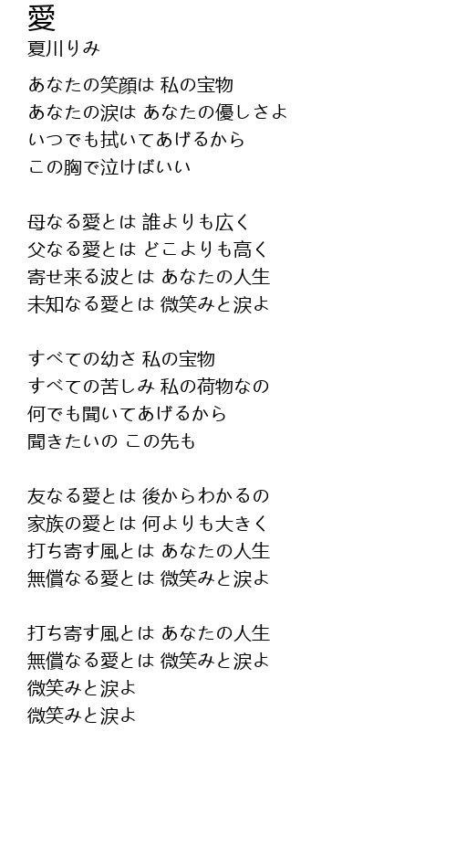 無償なる愛とは 微笑みと涙よ |