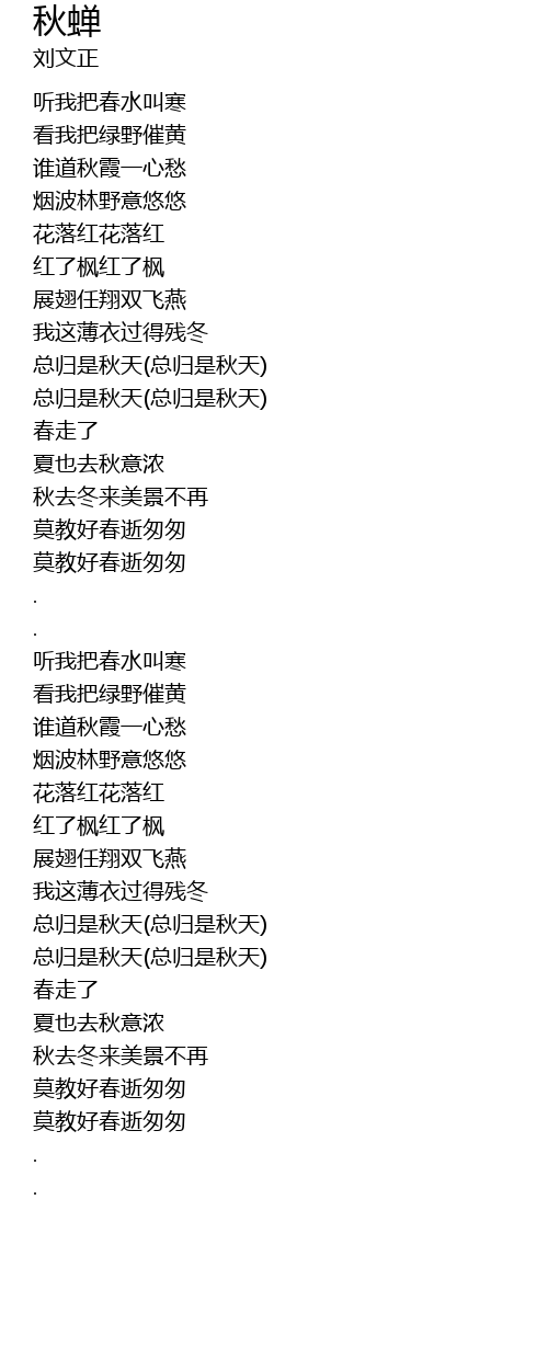 | [01:15.300] | zǒng guī shì qiū tiān zǒng guī shì qiū tiān |