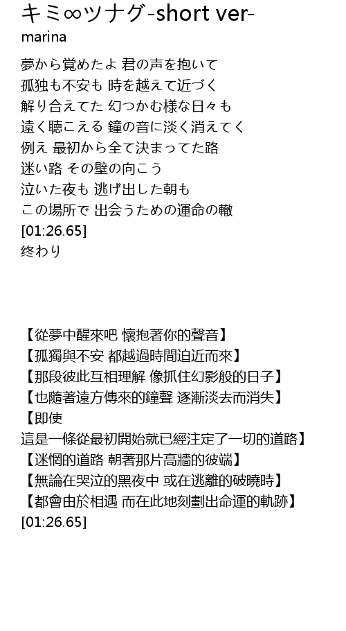 | [00:11.71] | 【從夢中醒來吧 懷抱著你的聲音】 |