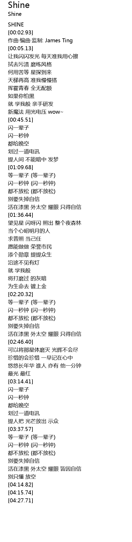 | [00:04.64] | zuò qǔ 8231 biān qǔ 8231 jiān zhì: James Ting |