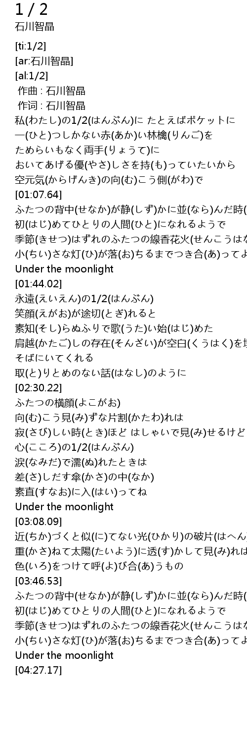 | [01:58.63] | 永遠(えいえん)の1/2(はんぶん) |