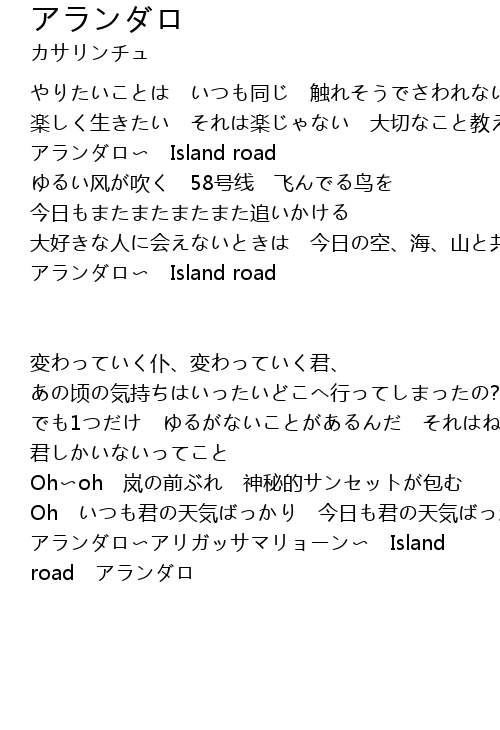 | アランダロ〜アリガッサマリョーン〜 Island road アランダロ |