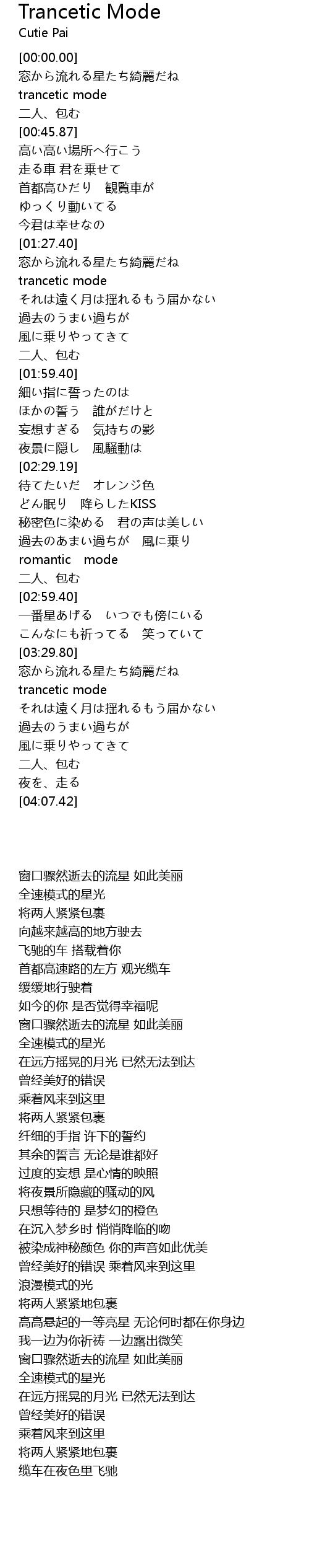 | [03:30.12] | 窓から流れる星たち綺麗だね |