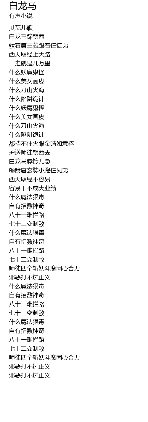 | [00:15.40] | 白龙马蹄朝西 |