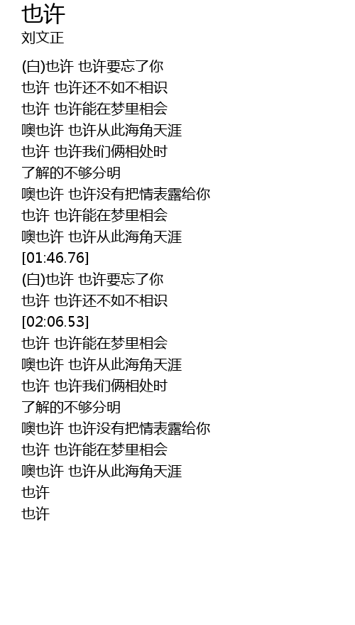| [00:20.46] | (白)也许 也许要忘了你 |