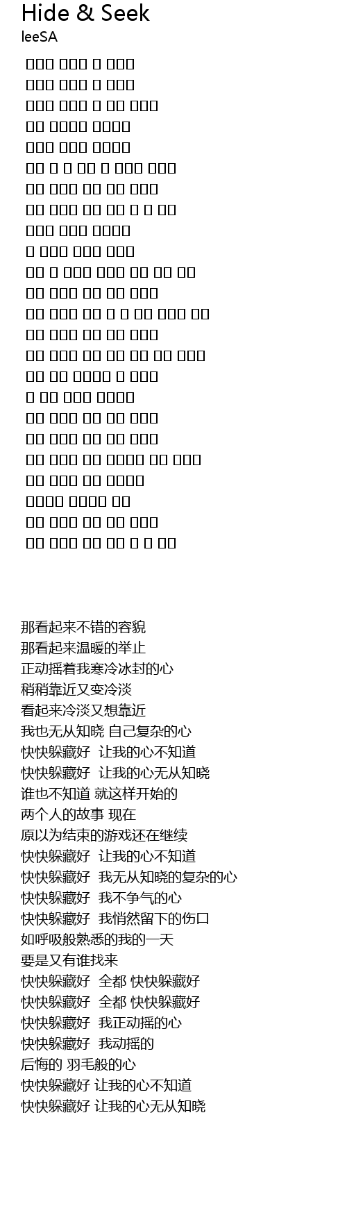 꼭꼭 숨어라 나의 마음 모르게 |
