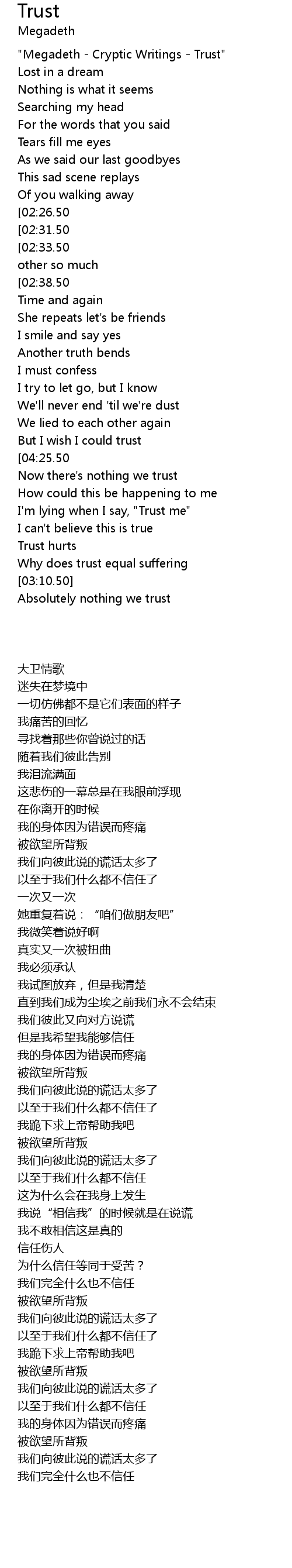 [00:00.00] "Megadeth - Cryptic Writings - Trust"