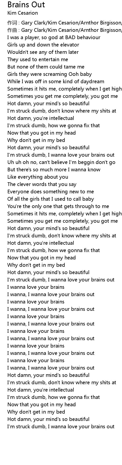 | 歌曲 | Brains Out |