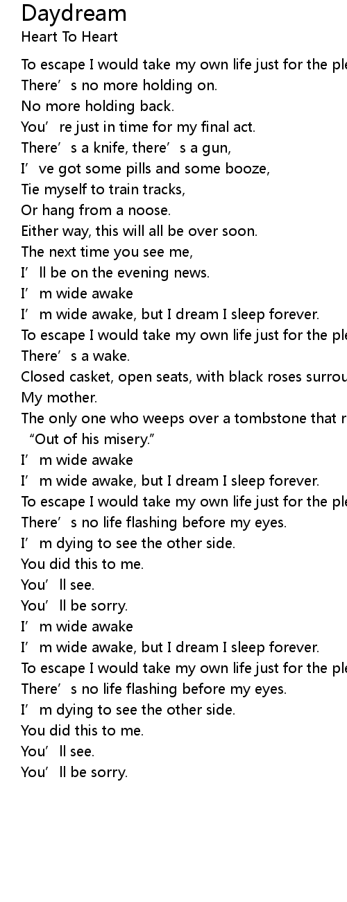 | I' m wide awake, but I dream I sleep forever. | |