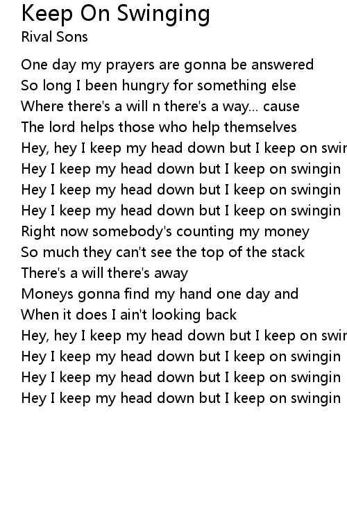 Hey, hey I keep my head down but I keep on swingin |