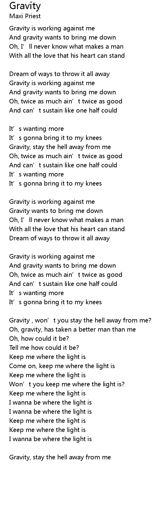 | And gravity wants to bring me down | |