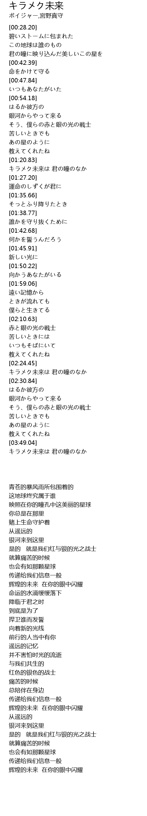 | [03:32.40] | そう、僕らの赤と銀の光の戦士 |