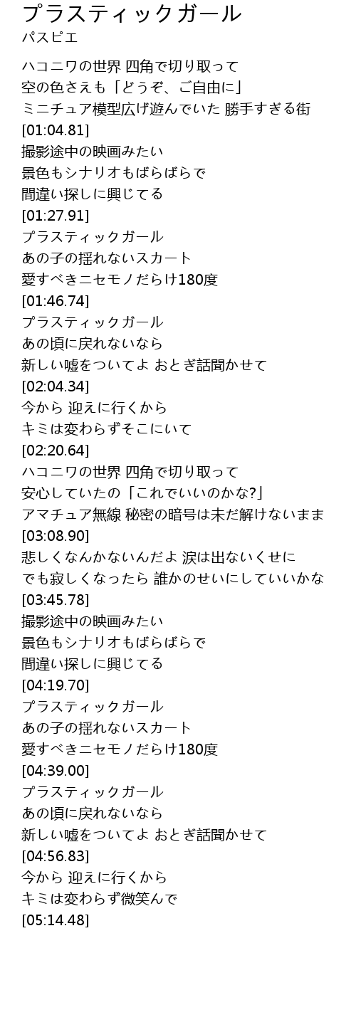 | [00:50.57] | ミニチュア模型広げ遊んでいた 勝手すぎる街 |