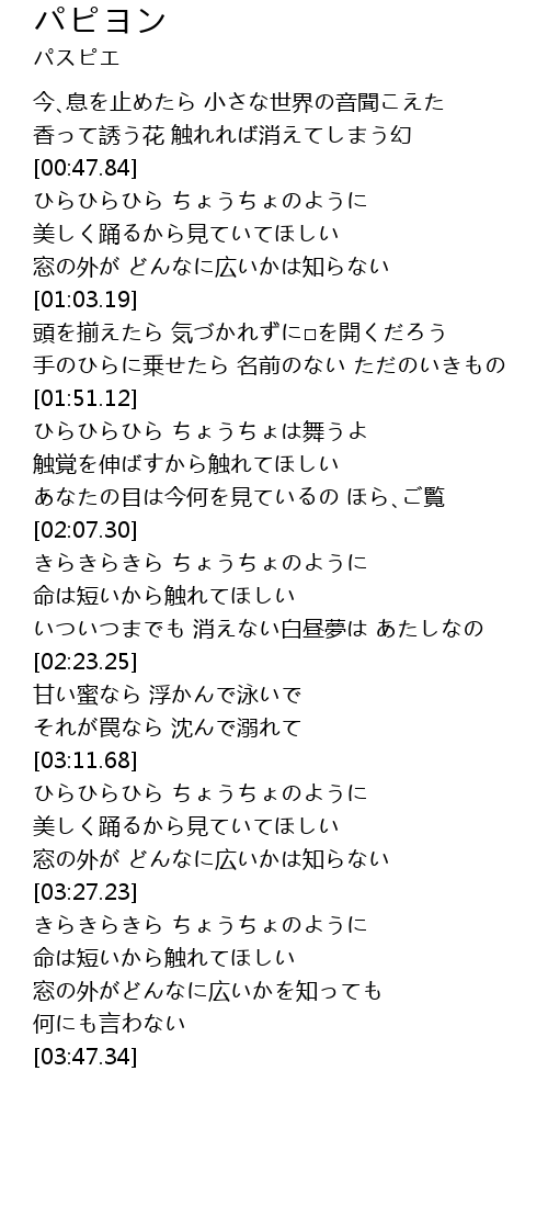 | [03:27.86] | きらきらきら ちょうちょのように |