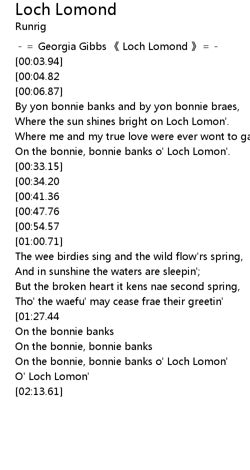 | [00:00.00] | -= Georgia Gibbs 《 Loch Lomond 》=- |