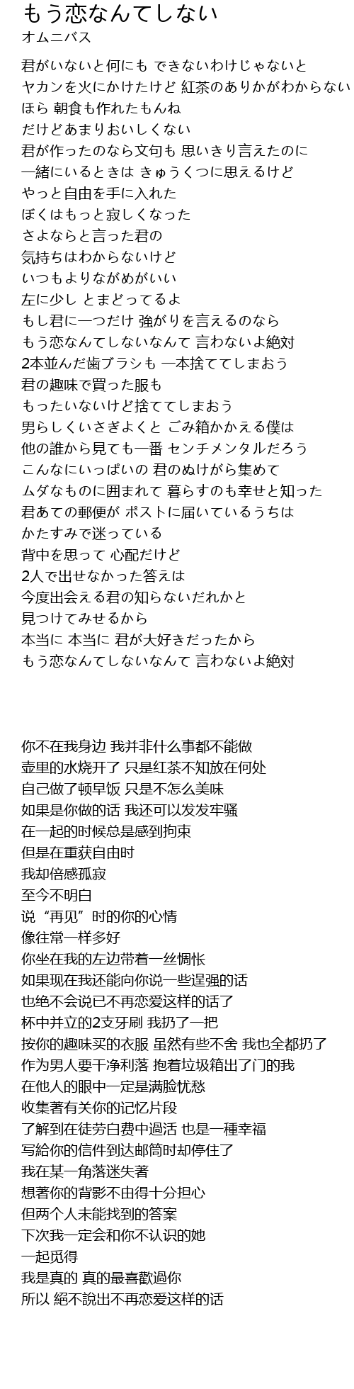 | [03:58.97] | もう恋なんてしないなんて 言わないよ絶対 |