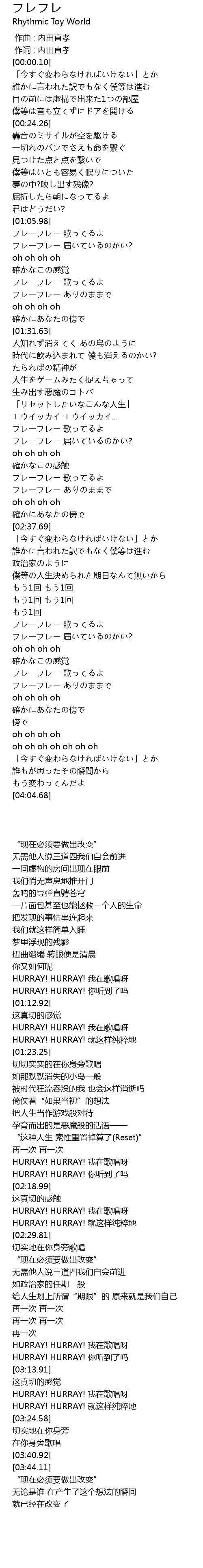 | [03:21.59] | HURRAY! HURRAY! 就这样纯粹地 |