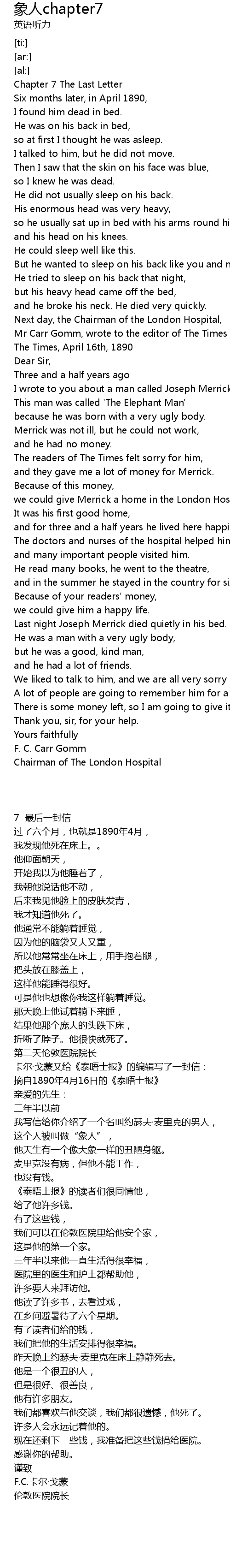I wrote to you about a man called Joseph Merrick. |