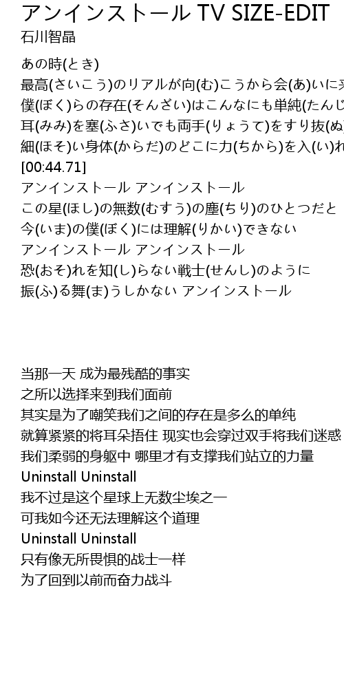 | [00:47.58] | Uninstall Uninstall |