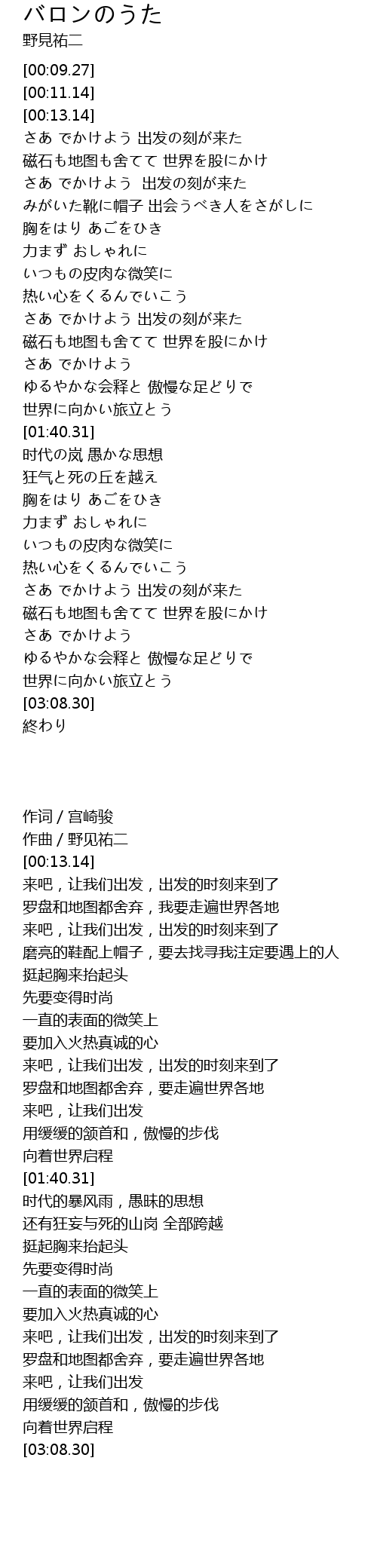 | [01:03.92] | さあ でかけよう 出发の刻が来た |