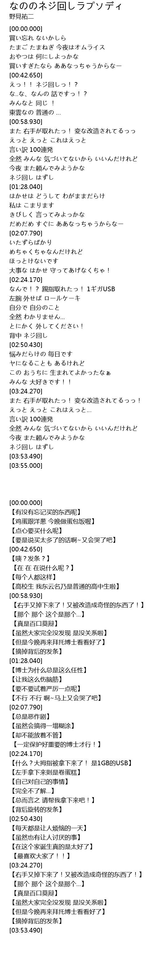 | [01:40.710] | はかせは どうして わがままだらけ |