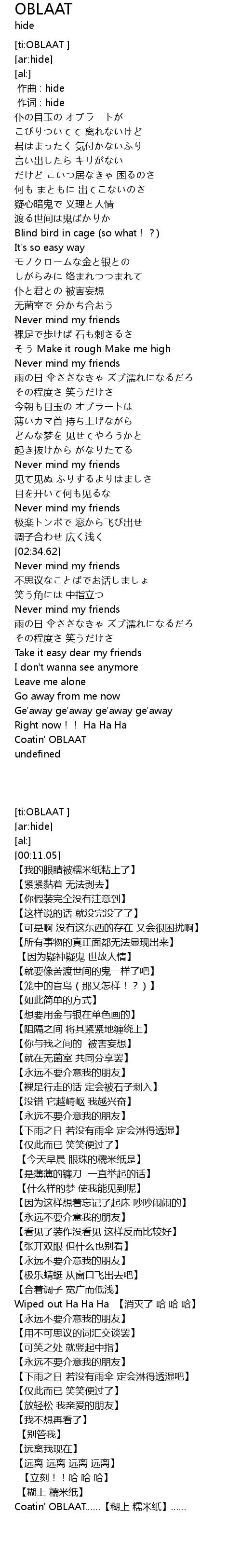 | [02:34.62] | Wiped out Ha Ha Ha 【消灭了 哈 哈 哈】 |