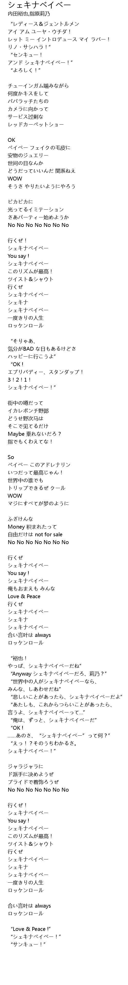 “Anyway シェキナベイべーだろ、莉乃?” |