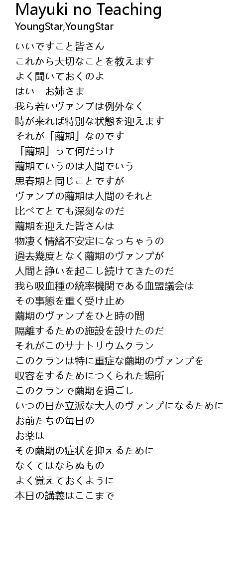 | [00:18.65] | 我ら若いヴァンプは例外なく |