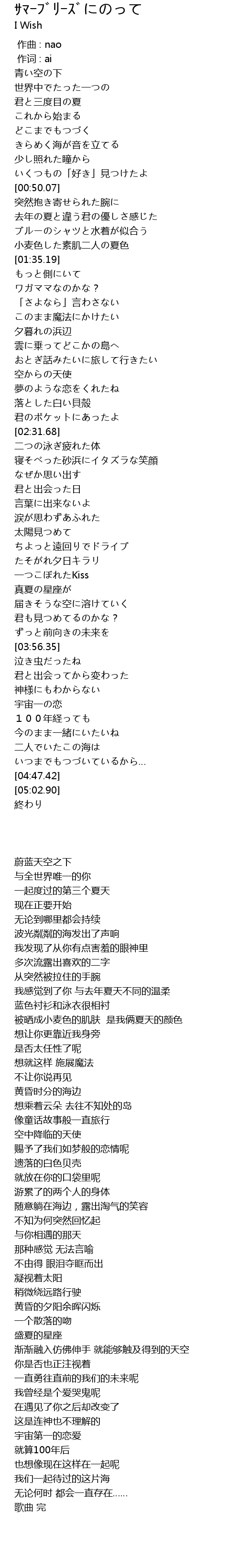 | [02:52.56] | 寝そべった砂浜にイタズラな笑顔 |