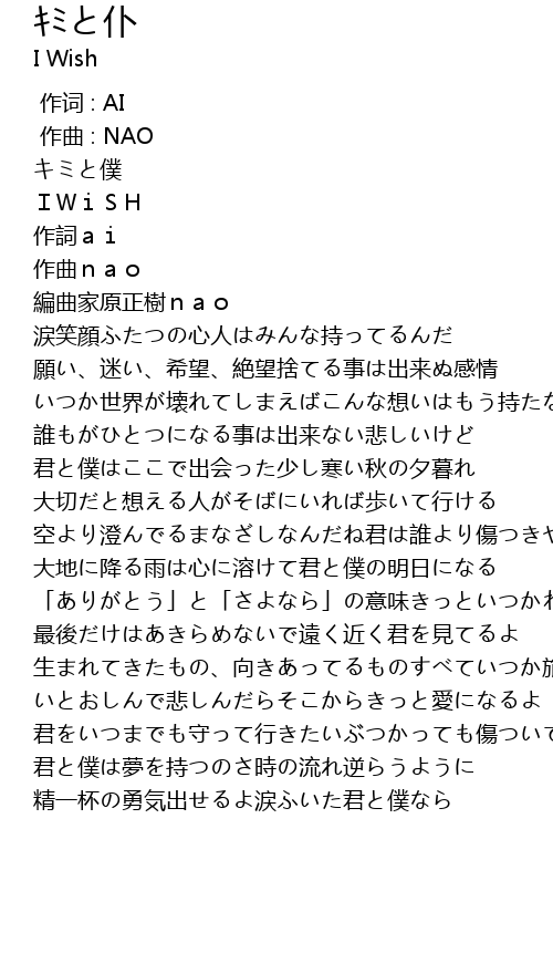 | [01:57.40] | 「ありがとう」と「さよなら」の意味きっといつかわかるはずだね |