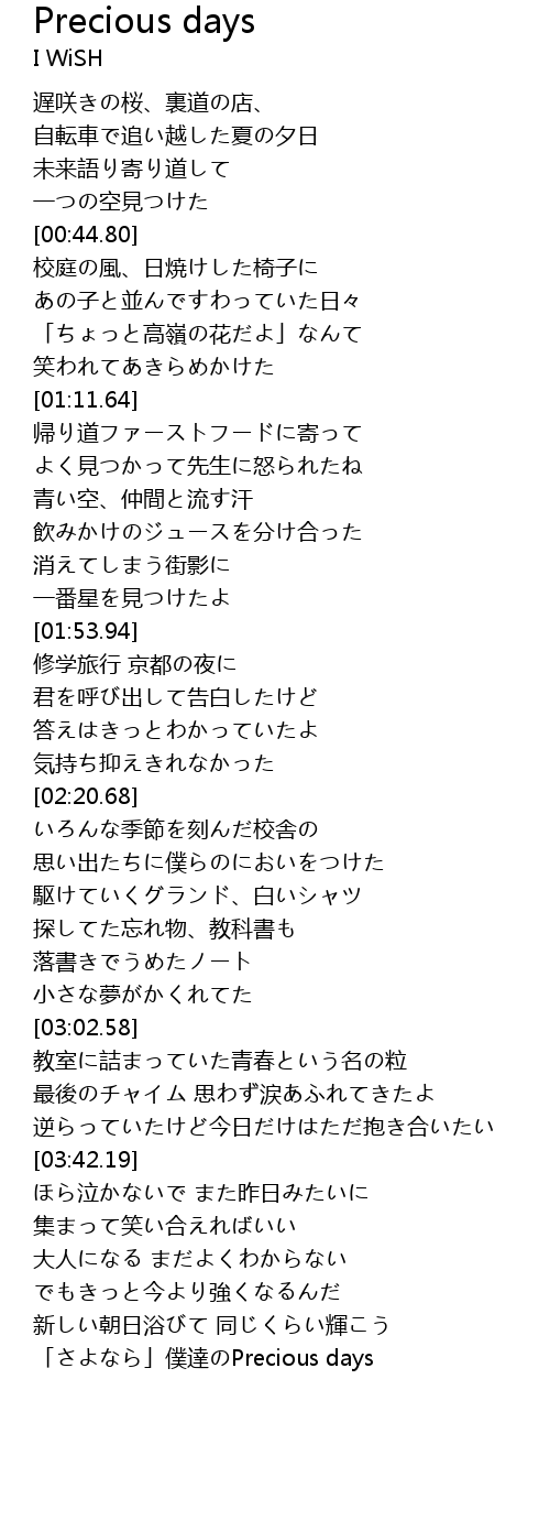 | [04:22.60] | 「さよなら」僕達のPrecious days |