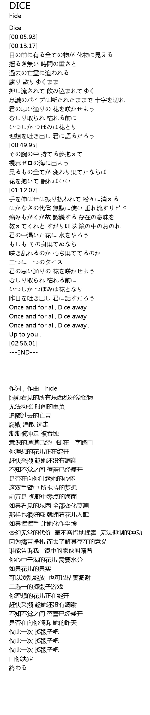 | [02:32.34] | Once and for all, Dice away... |