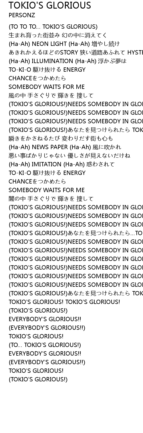 | (TOKIO'S GLORIOUS!)NEEDS SOMEBODY IN GLORIOUS LIFE! | |