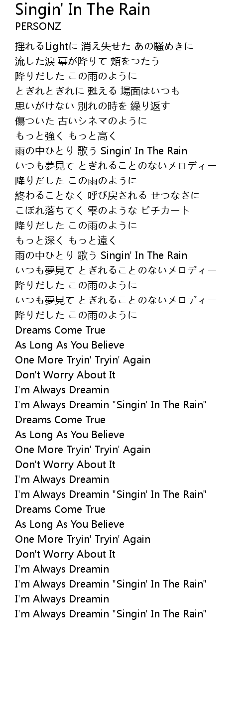 | I'm Always Dreamin "Singin' In The Rain" |