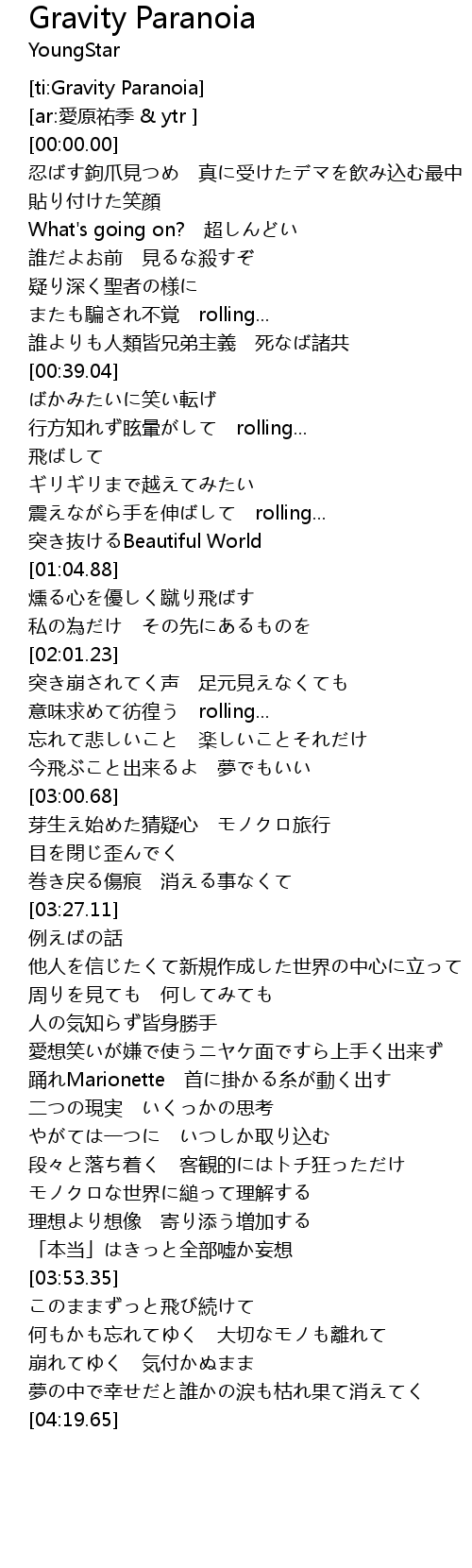 | [00:42.19] | 行方知れず眩暈がして rolling... |