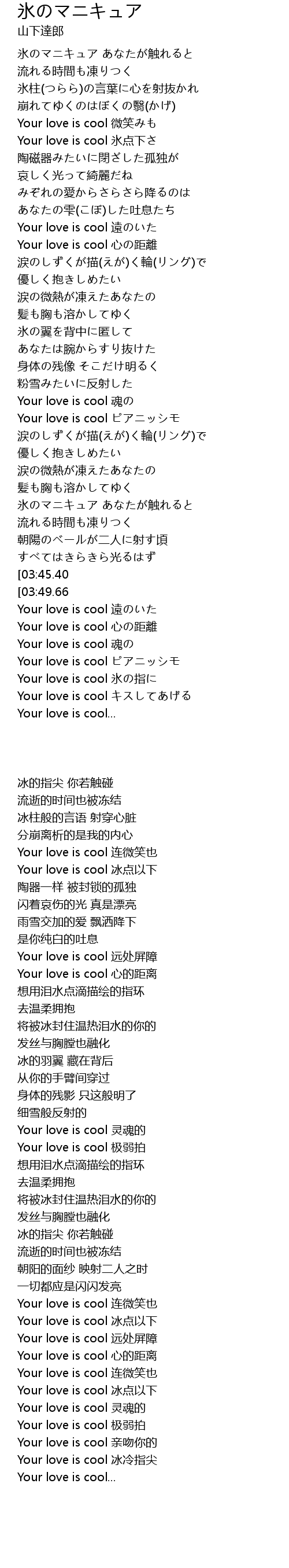 | [03:49.66] | Your love is cool 冰点以下 |