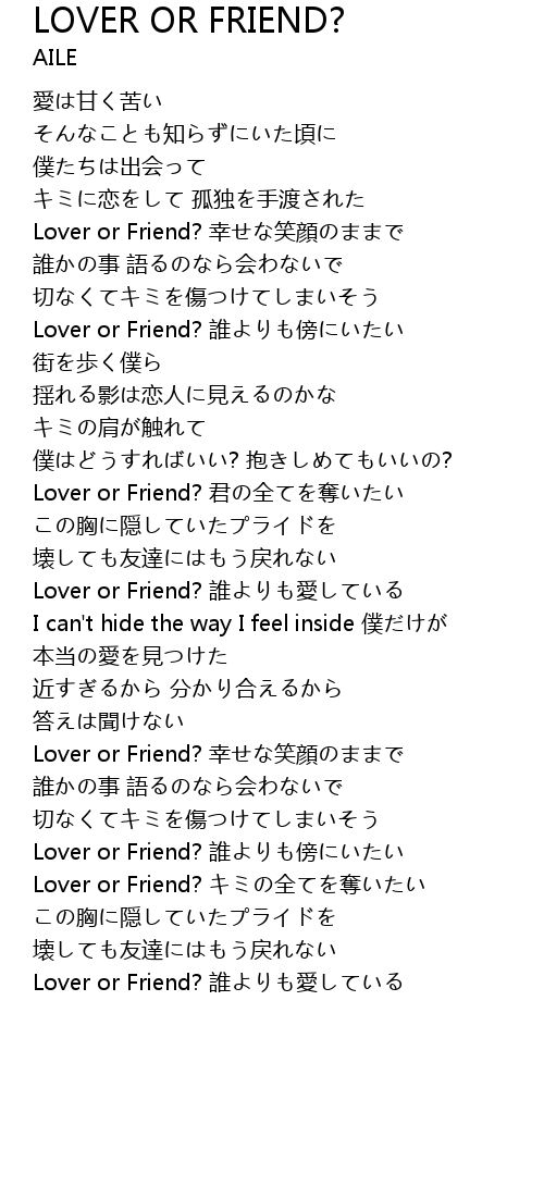 | Lover or Friend? 誰よりも愛している |
