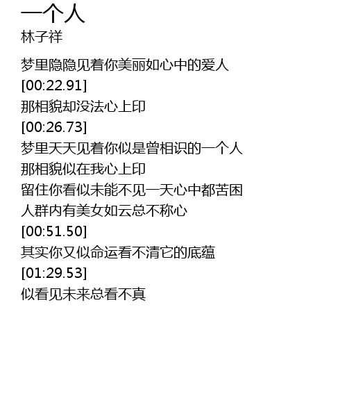| [00:30.22] | mèng lǐ tiān tiān jiàn zhe nǐ shì shì céng xiāng shí de yí ge rén |