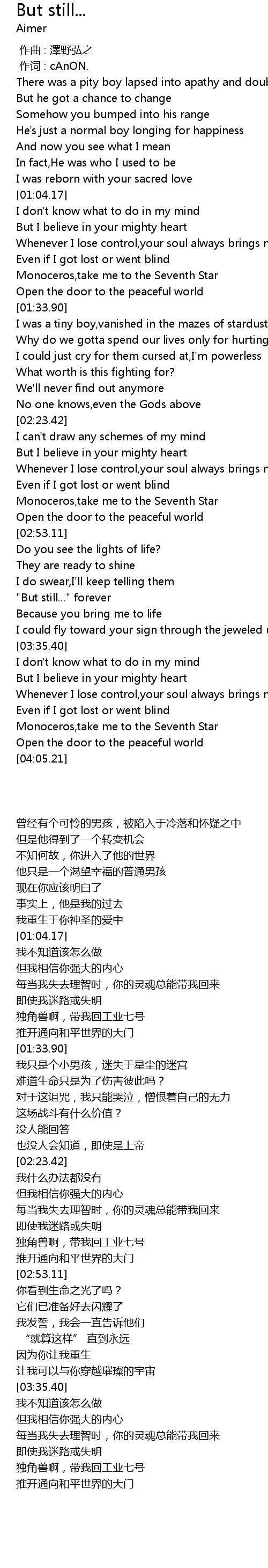 | [02:41.38] | Monoceros,take me to the Seventh Star |