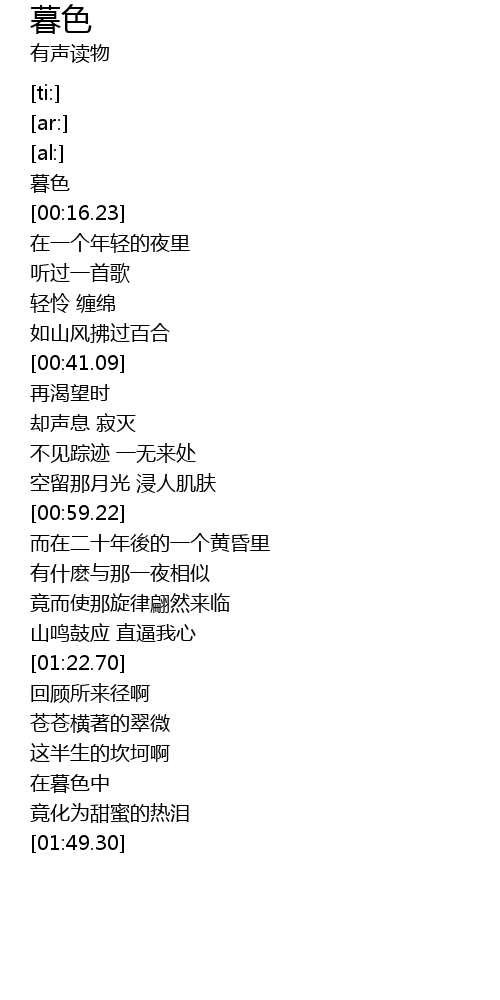 | [00:14.66] | 暮色 |