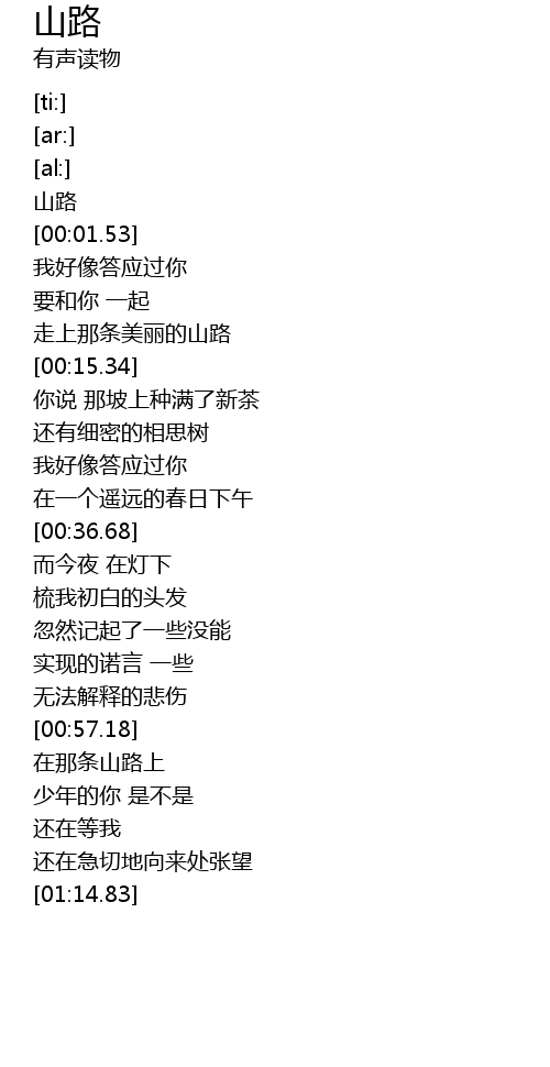 | [00:11.80] | zǒu shàng nà tiáo měi lì de shān lù |