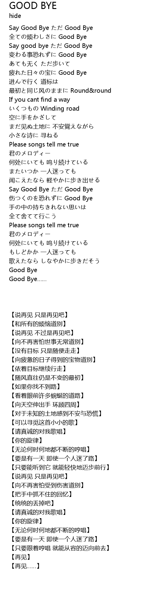 | [00:07.220] | 全ての烦わしさに Good Bye |
