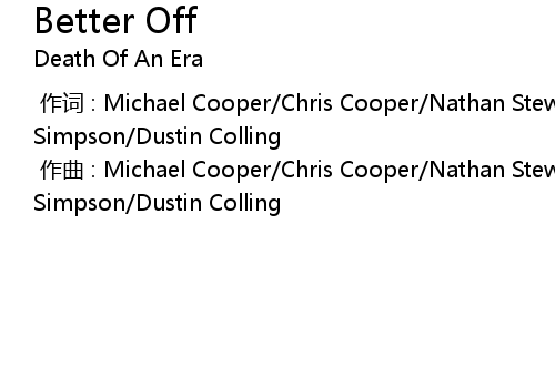 | [00:00.000] | zuò qǔ : Michael Cooper Chris Cooper Nathan Stewart Daniel Simpson Dustin Colling |