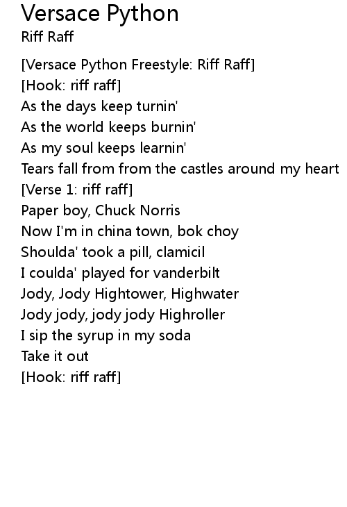 | [Versace Python Freestyle: Riff Raff] | |