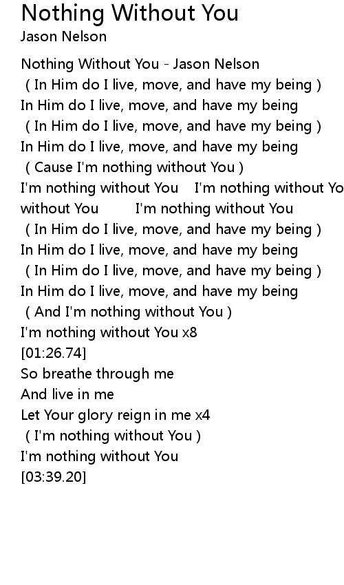 | [00:01.09] | Nothing Without You - Jason Nelson |