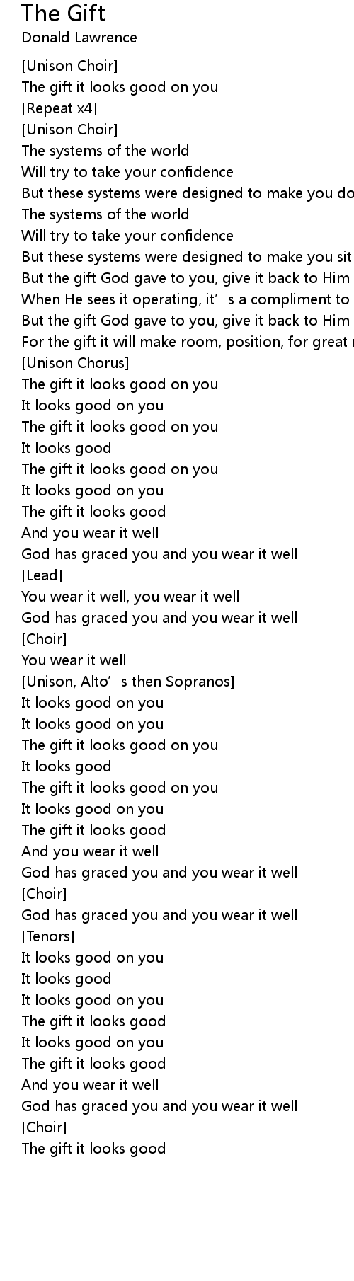 | The gift it looks good on you | |