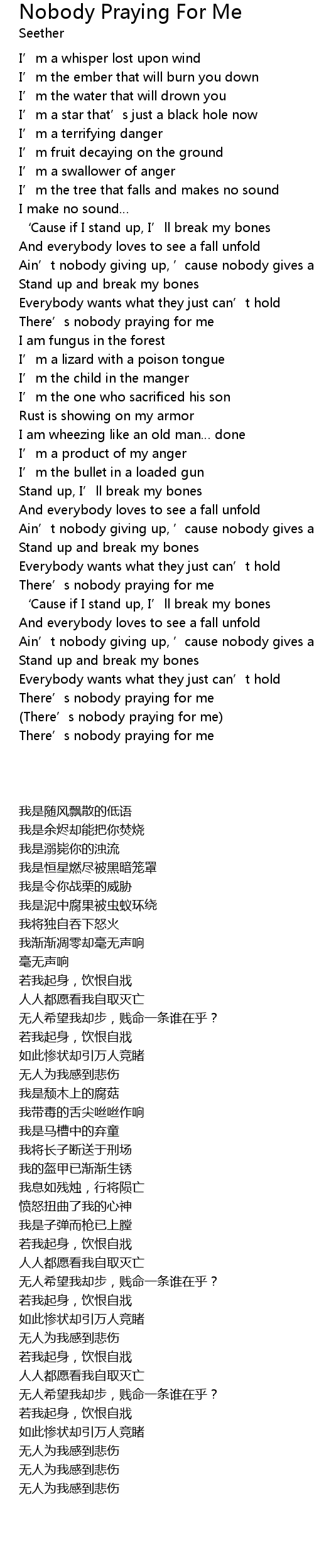 | [01:44.697] | 无人希望我却步,贱命一条谁在乎? |